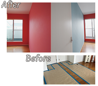 間仕切り壁で空間を分け、それぞれの個性に合わせたクロスをセレクト。お子様一人一人の「好き」が詰まった、自分だけの子ども部屋に生まれ変わりました。